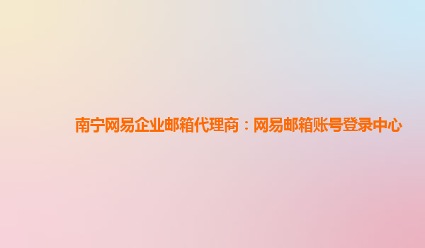 南寧網易企業郵箱代理商:網易郵箱賬號登錄中心