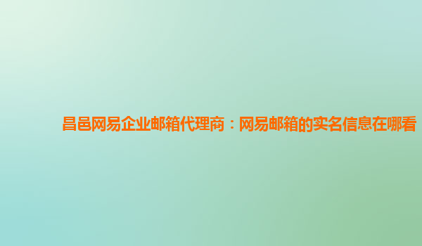 昌邑網易企業郵箱代理商:網易郵箱的實名信息在哪看