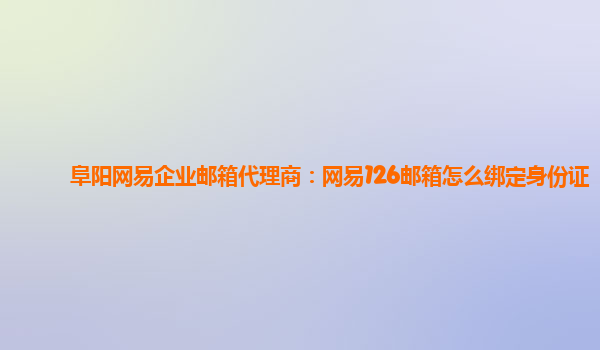 阜陽網易企業郵箱代理商:網易126郵箱怎么綁定身份證
