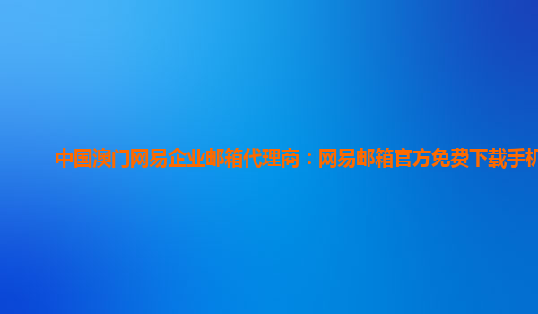 中國澳門網易企業郵箱代理商:網易郵箱官方免費下載手機版