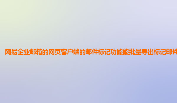 網(wǎng)易企業(yè)郵箱:郵件標(biāo)記功能與批量導(dǎo)出操作解析