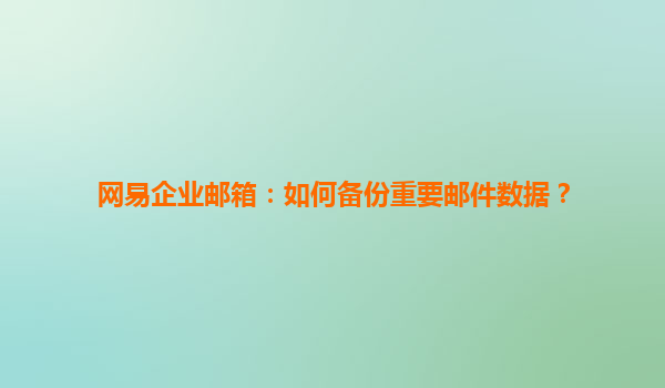 4008-020-360 網(wǎng)易企業(yè)郵箱:如何備份重要郵件數(shù)據(jù)? 一、網(wǎng)易企業(yè)郵箱的核心優(yōu)勢 在數(shù)字化辦公時代,企業(yè)郵箱不僅是溝通工具,更是數(shù)據(jù)資產(chǎn)的重要載體。網(wǎng)易企業(yè)郵箱憑借以下優(yōu)勢,成為眾多企業(yè)...