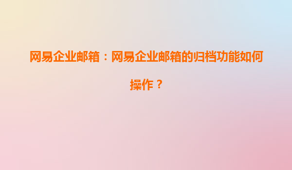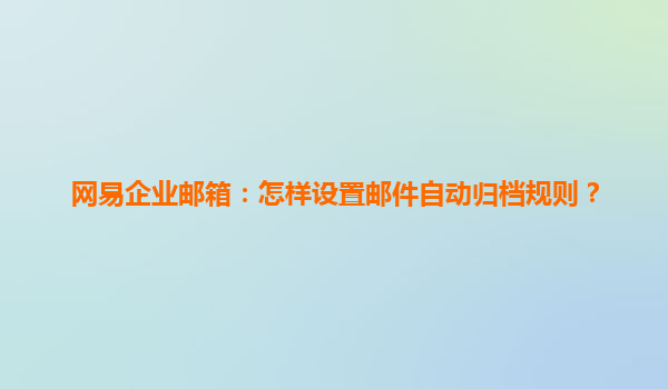 2025-06-29網(wǎng)易企業(yè)郵箱:郵件自動歸檔規(guī)則設(shè)置詳解 一、郵件自動歸檔的核心價值 郵件自動歸檔是網(wǎng)易企業(yè)郵箱的智能化管理功能,通過預(yù)設(shè)規(guī)則自動將特定郵件分類存儲到指定文件夾。它能實現(xiàn): 高效組織:自動分...