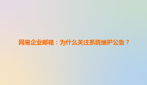 2025-06-30網(wǎng)易企業(yè)郵箱:為什么系統(tǒng)維護公告值得您的特別關(guān)注? 在數(shù)字化辦公時代,企業(yè)郵箱如同組織的"數(shù)字中樞神經(jīng)",任何細微波動都可能影響整個業(yè)務(wù)流程。網(wǎng)易企業(yè)郵箱定期發(fā)布的系統(tǒng)維護公告看似是...