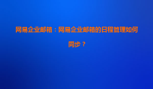 2025-06-30網(wǎng)易企業(yè)郵箱:網(wǎng)易企業(yè)郵箱的日程管理如何同步? 一、網(wǎng)易企業(yè)郵箱日程管理的核心優(yōu)勢 在企業(yè)數(shù)字化轉(zhuǎn)型的浪潮中,高效的日程管理成為提升團隊協(xié)作效率的關(guān)鍵。網(wǎng)易企業(yè)郵箱憑借其強大的日程...