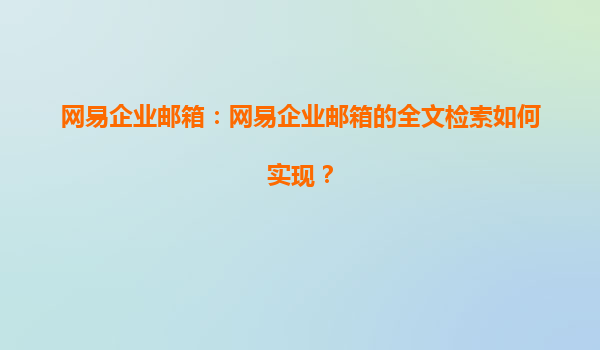 2025-06-28網(wǎng)易企業(yè)郵箱全文檢索實現(xiàn)解析:高效信息管理的核心技術(shù) 一、技術(shù)架構(gòu):分層分布式系統(tǒng)設計 網(wǎng)易企業(yè)郵箱的全文檢索采用三層架構(gòu)實現(xiàn): ...