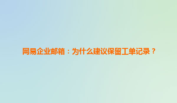 2025-06-15網(wǎng)易企業(yè)郵箱:為什么建議保留工單記錄? 在現(xiàn)代企業(yè)的信息化管理中,郵箱系統(tǒng)成為溝通協(xié)作的核心工具。網(wǎng)易企業(yè)郵箱憑借其卓越的性能、安全的保障和高效的服務(wù),贏得了眾多企業(yè)用戶的青睞。在實(shí)際運(yùn)維和服...