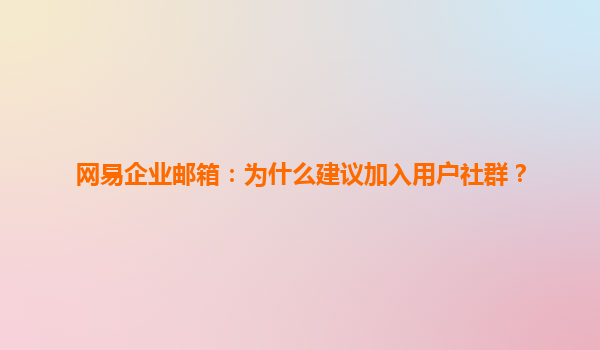 2025-06-15網(wǎng)易企業(yè)郵箱:為什么建議加入用戶社群? 在當(dāng)今信息時(shí)代,企業(yè)溝通與管理的重要性愈發(fā)突出。電子郵件作為企業(yè)日常運(yùn)營的基礎(chǔ)工具,其專業(yè)、安全與高效直接影響到公司的運(yùn)行效率。而在眾多郵件服務(wù)品牌中,網(wǎng)...