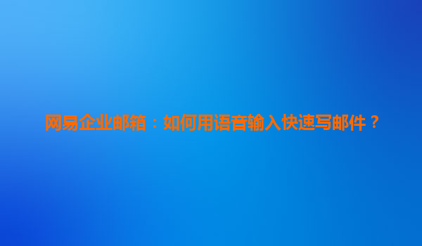 2025-06-14網(wǎng)易企業(yè)郵箱:如何用語音輸入快速寫郵件? 隨著信息化辦公的發(fā)展,郵件溝通在日常工作中扮演著至關(guān)重要的角色。高效、便捷地撰寫和處理郵件,不僅提升了個人辦公效率,更有助于企業(yè)整體運營流程的優(yōu)...