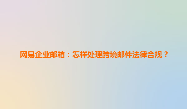 2025-06-14網(wǎng)易企業(yè)郵箱:怎樣處理跨境郵件法律合規(guī)? 在全球化業(yè)務(wù)迅速發(fā)展的今天,企業(yè)頻繁涉及到跨境郵件溝通與數(shù)據(jù)傳輸。然而,跨境郵件涉及的法律法規(guī)非常復(fù)雜,不同國家和地區(qū)對于郵件內(nèi)容、數(shù)據(jù)安全、個人隱私等方面...