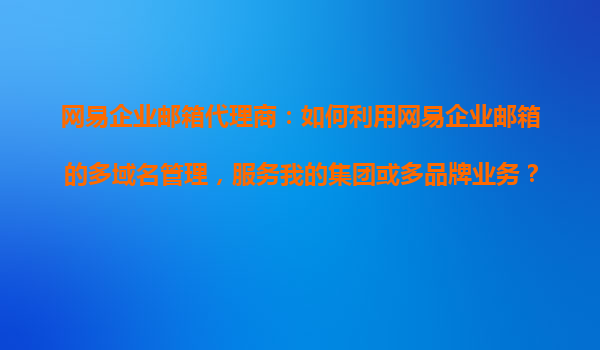 2025-11-03引言:多域名管理助力企業(yè)集團化發(fā)展 在數(shù)字化辦公時代,企業(yè)郵箱不僅是溝通工具,更是品牌形象與管理效率的體現(xiàn)。網(wǎng)易企業(yè)郵箱憑借其強大的多域名管理功能,為集團企業(yè)及多品牌業(yè)務提供了一站式解...