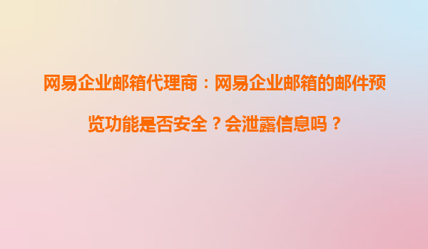 2025-11-03網(wǎng)易企業(yè)郵箱代理商:網(wǎng)易企業(yè)郵箱的郵件預覽功能是否安全?會泄露信息嗎? 引言 在當今數(shù)字化時代,企業(yè)郵箱的安全性成為企業(yè)信息化管理的重中之重。網(wǎng)易企業(yè)郵箱作為國內領先的企業(yè)郵箱服務提供商,以其穩(wěn)定性、...