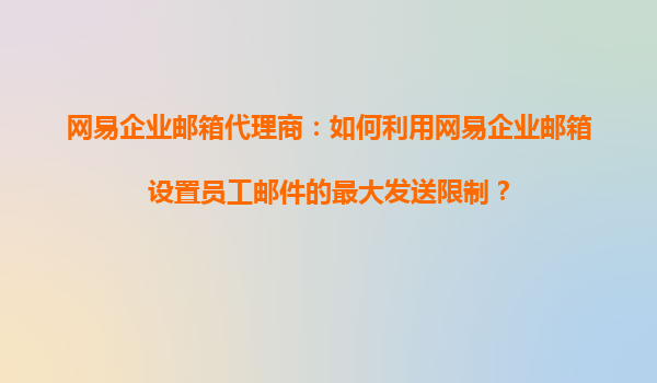 2025-11-03網(wǎng)易企業(yè)郵箱代理商:如何利用網(wǎng)易企業(yè)郵箱設置員工郵件的最大發(fā)送限制? 一、網(wǎng)易企業(yè)郵箱的核心優(yōu)勢 作為國內領先的企業(yè)級郵箱服務商,網(wǎng)易企業(yè)郵箱憑借以下核心優(yōu)勢成為眾多企業(yè)的首選: 高安全性保...