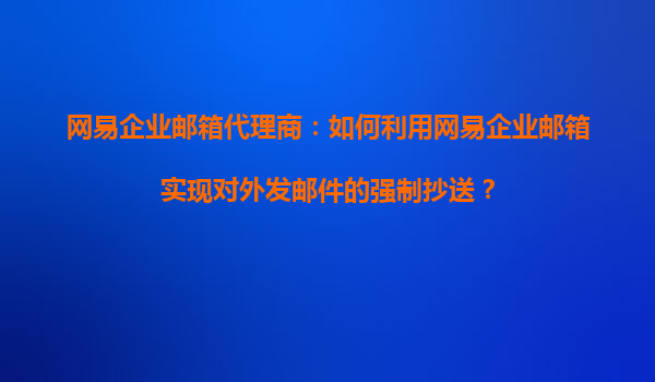2025-11-04網(wǎng)易企業(yè)郵箱代理商:如何利用網(wǎng)易企業(yè)郵箱實現(xiàn)對外發(fā)郵件的強制抄送? 引言 在現(xiàn)代企業(yè)管理中,郵件溝通是不可或缺的一部分。許多企業(yè)希望對其員工的對外郵件進行監(jiān)管,以確保信息的安全性、合規(guī)性和透明度。網(wǎng)易...