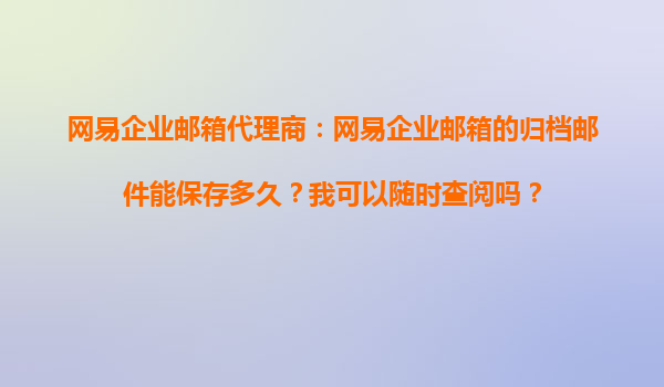 2025-11-03網(wǎng)易企業(yè)郵箱歸檔郵件保存時長及查閱指南:代理商視角解析 一、網(wǎng)易企業(yè)郵箱歸檔郵件的核心功能 網(wǎng)易企業(yè)郵箱作為國內領先的企業(yè)級郵件服務,其歸檔功能是企業(yè)數(shù)據(jù)管理的重要工具。歸檔郵件采用獨立云...