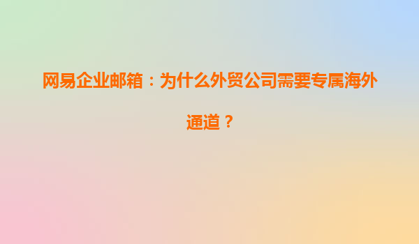 2025-04-28為什么外貿(mào)公司需要專(zhuān)屬海外通道? 隨著全球化進(jìn)程的不斷加快,外貿(mào)公司面臨著越來(lái)越多的國(guó)際競(jìng)爭(zhēng)和挑戰(zhàn)。在這樣的大背景下,外貿(mào)公司如何在跨國(guó)溝通中保持高效、穩(wěn)定和安全,成為了一個(gè)亟待解決的問(wèn)題。而網(wǎng)易企業(yè)...