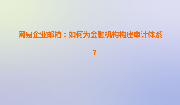 2025-04-28如何為金融機(jī)構(gòu)構(gòu)建審計(jì)體系:結(jié)合網(wǎng)易企業(yè)郵箱的優(yōu)勢(shì) 引言 隨著金融行業(yè)的不斷發(fā)展,審計(jì)體系的建立變得越來(lái)越重要。審計(jì)不僅是確保金融機(jī)構(gòu)合規(guī)運(yùn)營(yíng)的重要手段,也是對(duì)風(fēng)險(xiǎn)進(jìn)行有效管理的必要手段。為了...