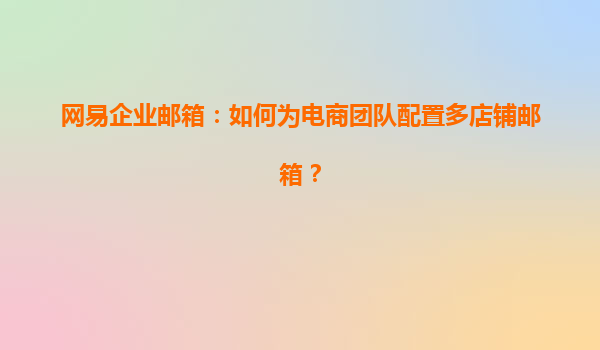 2025-04-28如何為電商團(tuán)隊(duì)配置多店鋪郵箱-網(wǎng)易企業(yè)郵箱的優(yōu)勢(shì)與解決方案 在當(dāng)前競(jìng)爭(zhēng)激烈的電商市場(chǎng)中,電商團(tuán)隊(duì)管理多個(gè)店鋪?zhàn)兊糜悠毡椋绾胃咝А⒈憬莸毓芾矶鄠€(gè)店鋪的郵件溝通成為了電商團(tuán)隊(duì)的重要任務(wù)。網(wǎng)易企業(yè)郵箱...
