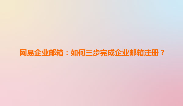 2025-04-28如何三步完成網(wǎng)易企業(yè)郵箱注冊(cè):簡(jiǎn)單高效,助力企業(yè)溝通 隨著互聯(lián)網(wǎng)技術(shù)的不斷發(fā)展,電子郵件已經(jīng)成為企業(yè)日常溝通和信息傳遞的重要工具。企業(yè)郵箱不僅為公司提供專(zhuān)業(yè)的郵件服務(wù),還能幫助提升企業(yè)形象和提高工作效...