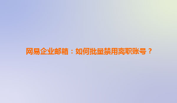 2025-04-26如何批量禁用網(wǎng)易企業(yè)郵箱離職賬號 隨著企業(yè)的發(fā)展與人員流動,很多公司都面臨著管理大量郵箱賬號的挑戰(zhàn)。尤其是對于離職員工的郵箱賬號,如果不及時禁用,可能會導(dǎo)致數(shù)據(jù)泄露、信息泄漏等安全問題。因此,及時...
