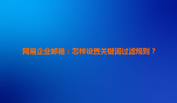 2025-04-26網(wǎng)易企業(yè)郵箱:怎樣設(shè)置關(guān)鍵詞過濾規(guī)則? 隨著企業(yè)信息化的發(fā)展,電子郵件已成為日常辦公溝通中不可或缺的工具。而在眾多企業(yè)郵箱產(chǎn)品中,網(wǎng)易企業(yè)郵箱憑借其穩(wěn)定、安全、高效的性能贏得了廣大用戶的青...