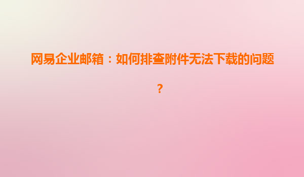 2025-04-26網(wǎng)易企業(yè)郵箱:如何排查附件無法下載的問題 在使用網(wǎng)易企業(yè)郵箱時,有時會遇到附件無法下載的情況。附件無法下載不僅會影響郵件的正常使用,還可能影響到企業(yè)內(nèi)部的溝通效率。本文將分析附件無法下載的常見原因,結(jié)...
