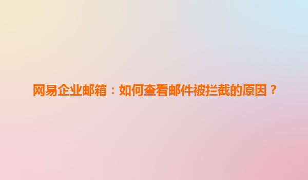 4008-020-360 網(wǎng)易企業(yè)郵箱:如何查看郵件被攔截的原因 隨著互聯(lián)網(wǎng)的普及和電子郵件的廣泛應(yīng)用,企業(yè)郵箱逐漸成為現(xiàn)代企業(yè)溝通的重要工具。網(wǎng)易企業(yè)郵箱作為國內(nèi)知名的郵箱服務(wù)商之一,憑借其強(qiáng)大的功能和穩(wěn)定的服務(wù),贏得了大量...