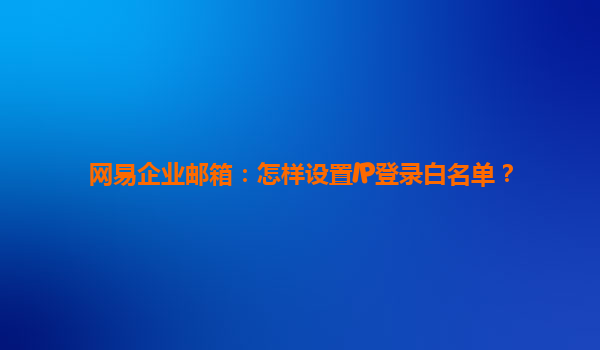 2025-04-25如何設(shè)置網(wǎng)易企業(yè)郵箱的IP登錄白名單 隨著企業(yè)對信息安全的日益重視,如何確保郵箱的安全成為了許多公司關(guān)注的重點(diǎn)。網(wǎng)易企業(yè)郵箱憑借其穩(wěn)定性、易用性和強(qiáng)大的功能,成為了眾多企業(yè)郵箱服務(wù)的首選。在使用...