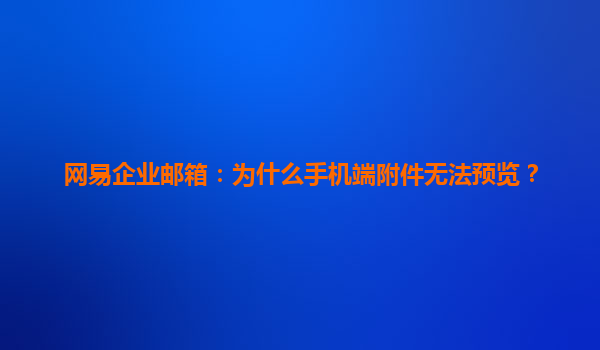 2025-04-25網(wǎng)易企業(yè)郵箱:為什么手機(jī)端附件無法預(yù)覽? 網(wǎng)易企業(yè)郵箱作為中國領(lǐng)先的企業(yè)郵箱服務(wù)提供商之一,憑借其穩(wěn)定的服務(wù)和強(qiáng)大的功能,已經(jīng)成為許多企業(yè)在郵件溝通中的首選平臺。隨著移動辦公的普及,越來越多的企業(yè)員工...