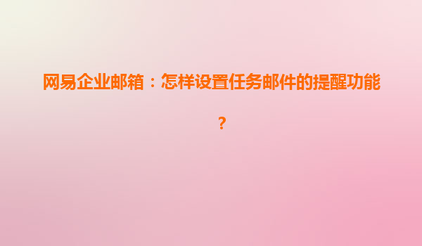 2025-04-25網(wǎng)易企業(yè)郵箱:怎樣設(shè)置任務(wù)郵件的提醒功能? 任何一家企業(yè)都無法離開電子郵件進(jìn)行商務(wù)通信,而網(wǎng)易企業(yè)郵箱因其強(qiáng)大的功能和穩(wěn)定的性能,成為了很多公司的首選。其中一個被廣泛使用的功能就是任務(wù)郵件的提醒功...