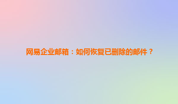 4008-020-360 網(wǎng)易企業(yè)郵箱:如何恢復(fù)已刪除的郵件? 隨著企業(yè)信息化程度的不斷提升,郵箱作為日常工作中不可或缺的工具,已經(jīng)成為了員工溝通、文件傳輸?shù)闹匾緩健H欢捎诠ぷ髦胁僮魇д`或者其他原因,郵件誤刪的情況屢...