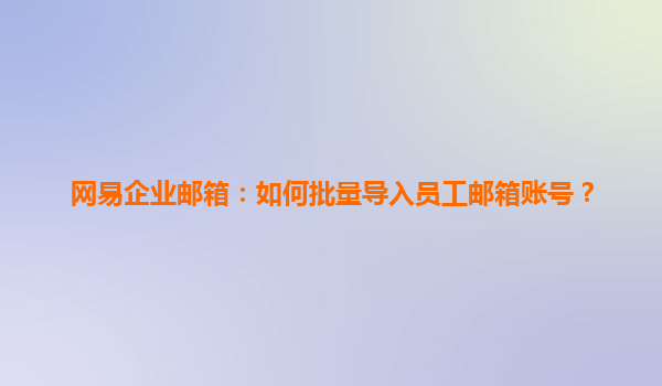 2025-04-24網(wǎng)易企業(yè)郵箱:如何批量導(dǎo)入員工郵箱賬號? 在如今信息化和數(shù)字化迅速發(fā)展的時代,企業(yè)郵箱已成為各大公司日常溝通的重要工具。為了更好地管理和使用企業(yè)郵箱,尤其是在員工較多的企業(yè)中,如何高效地批量導(dǎo)入員工郵...