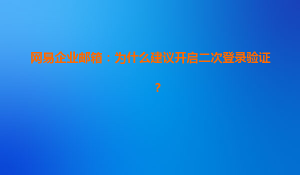 2025-04-24為何建議開啟網(wǎng)易企業(yè)郵箱二次登錄驗證? 隨著互聯(lián)網(wǎng)技術(shù)的不斷發(fā)展,信息安全問題也變得日益重要,尤其是企業(yè)郵件系統(tǒng)的安全性問題。在眾多企業(yè)郵箱中,網(wǎng)易企業(yè)郵箱憑借其強(qiáng)大的功能和高效的服務(wù)深受企業(yè)用戶的青...