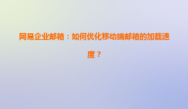 2025-04-23如何優(yōu)化移動端郵箱的加載速度?——以網(wǎng)易企業(yè)郵箱為例 隨著移動互聯(lián)網(wǎng)的飛速發(fā)展,越來越多的企業(yè)依賴電子郵件進(jìn)行日常溝通和工作管理。而在移動設(shè)備上,郵件的加載速度直接影響到工作效率和用戶體驗。網(wǎng)易企業(yè)...