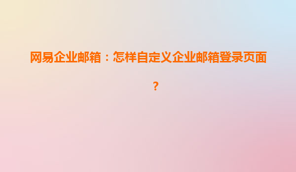 2025-04-25如何自定義網(wǎng)易企業(yè)郵箱登錄頁面? 隨著數(shù)字化辦公的快速發(fā)展,企業(yè)郵箱作為企業(yè)日常溝通與信息管理的重要工具,已成為現(xiàn)代辦公的基礎(chǔ)設(shè)施之一。網(wǎng)易企業(yè)郵箱作為國內(nèi)領(lǐng)先的企業(yè)郵箱服務(wù)之一,憑借其高效、安全、穩(wěn)...