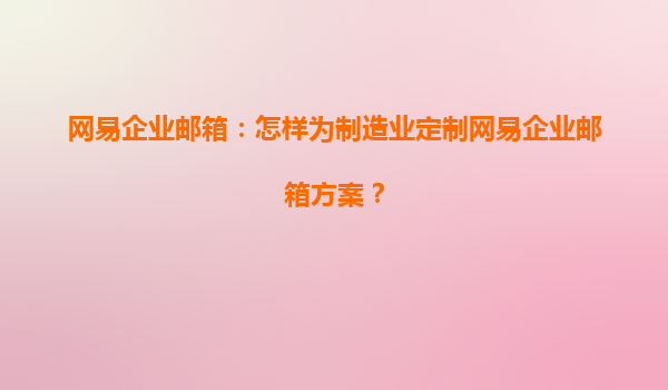 2025-04-20如何為制造業(yè)定制網(wǎng)易企業(yè)郵箱方案 一、網(wǎng)易企業(yè)郵箱簡(jiǎn)介 隨著信息化時(shí)代的到來(lái),企業(yè)間的溝通與合作變得愈加依賴(lài)電子郵件系統(tǒng)。在這一過(guò)程中,企業(yè)郵箱成為了重要的溝通工具。網(wǎng)易企業(yè)郵箱憑借其高效、安全和...