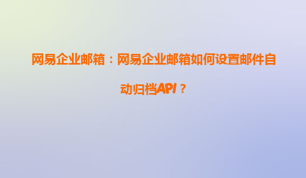 2025-04-20網(wǎng)易企業(yè)郵箱自動(dòng)歸檔API設(shè)置指南 網(wǎng)易企業(yè)郵箱作為國(guó)內(nèi)知名的企業(yè)郵件服務(wù)平臺(tái),不僅提供了穩(wěn)定的郵件發(fā)送與接收功能,還為企業(yè)用戶(hù)提供了諸如郵件歸檔、郵件管理等多種高級(jí)功能。本文將詳細(xì)介紹如何通過(guò)API設(shè)置網(wǎng)...