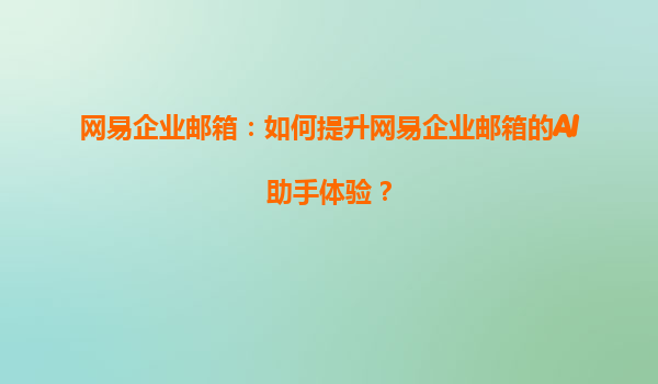 2025-04-20如何提升網(wǎng)易企業(yè)郵箱的AI助手體驗(yàn) 網(wǎng)易企業(yè)郵箱的優(yōu)勢(shì)概述 隨著科技的不斷進(jìn)步,企業(yè)的溝通方式也在不斷優(yōu)化和提升。在這個(gè)信息化時(shí)代,企業(yè)郵箱作為公司內(nèi)部溝通的核心工具,發(fā)揮著不可忽視的作用。網(wǎng)易...