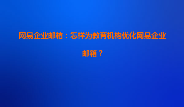 2025-04-20如何為教育機(jī)構(gòu)優(yōu)化網(wǎng)易企業(yè)郵箱 隨著互聯(lián)網(wǎng)技術(shù)的不斷發(fā)展,企業(yè)郵箱已經(jīng)成為了各類(lèi)機(jī)構(gòu)、企業(yè)以及教育機(jī)構(gòu)不可或缺的工作工具。網(wǎng)易企業(yè)郵箱憑借其高效、安全、穩(wěn)定的特點(diǎn),逐漸成為教育行業(yè)中廣泛應(yīng)用的郵箱服...