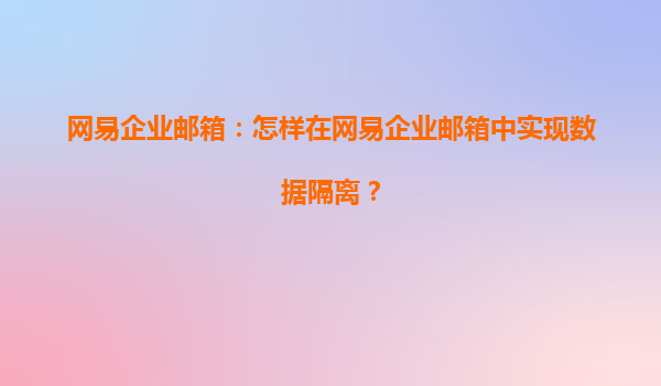 4008-020-360 怎樣在網(wǎng)易企業(yè)郵箱中實(shí)現(xiàn)數(shù)據(jù)隔離? 隨著企業(yè)信息化的不斷發(fā)展,電子郵件已成為日常工作中重要的溝通工具。尤其是對于企業(yè)郵箱服務(wù),保障郵件數(shù)據(jù)的安全性、隱私性和有效管理是其核心任務(wù)之一。網(wǎng)易企業(yè)郵箱憑借...