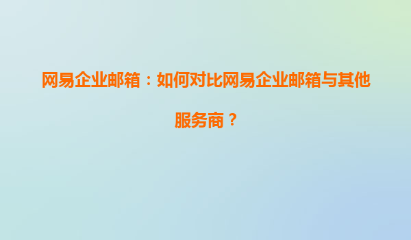 2025-04-19如何對比網(wǎng)易企業(yè)郵箱與其他服務(wù)商 在如今的企業(yè)辦公環(huán)境中,電子郵件已成為工作溝通和信息傳遞的重要工具。作為企業(yè)辦公的基礎(chǔ)設(shè)施之一,企業(yè)郵箱的選擇直接影響到企業(yè)內(nèi)部的溝通效率和信息安全性。本文將通過對比...