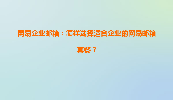 2025-04-19如何選擇適合企業(yè)的網(wǎng)易企業(yè)郵箱套餐 隨著企業(yè)的發(fā)展,郵箱已經(jīng)成為日常辦公溝通的重要工具。網(wǎng)易企業(yè)郵箱以其穩(wěn)定性、豐富的功能和良好的服務(wù)體驗(yàn),成為了許多企業(yè)的首選。然而,面對不同的套餐選擇,如何根據(jù)企...