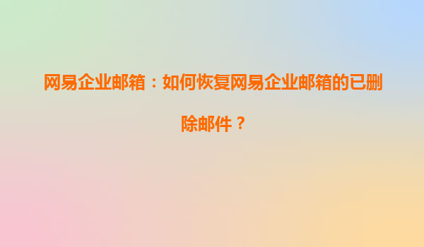 2025-04-17如何恢復(fù)網(wǎng)易企業(yè)郵箱的已刪除郵件? 網(wǎng)易企業(yè)郵箱作為國內(nèi)領(lǐng)先的企業(yè)郵箱服務(wù)提供商,憑借其穩(wěn)定性和高效性,成為了眾多企業(yè)的重要選擇。企業(yè)在日常運(yùn)作中,難免會(huì)因操作失誤或其他原因?qū)е锣]件丟失或誤刪。在這種...