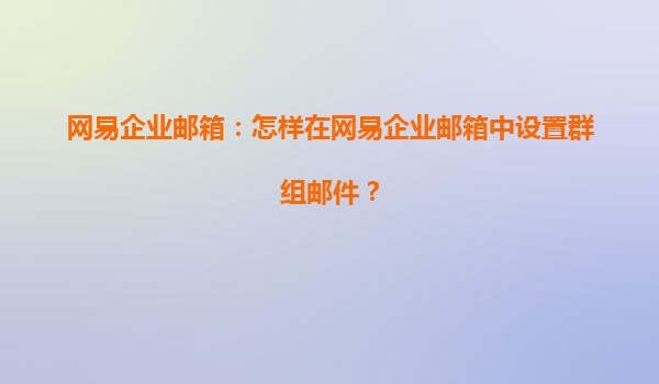 2025-04-17如何在網(wǎng)易企業(yè)郵箱中設(shè)置群組郵件 隨著企業(yè)通訊需求的不斷增長,如何有效管理團(tuán)隊(duì)間的郵件溝通成為了企業(yè)工作效率的關(guān)鍵。網(wǎng)易企業(yè)郵箱作為國內(nèi)領(lǐng)先的企業(yè)郵箱服務(wù)平臺(tái),不僅提供高效的郵件收發(fā)功能,還有強(qiáng)大...
