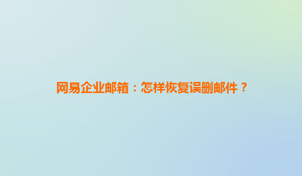 2025-04-13如何恢復(fù)網(wǎng)易企業(yè)郵箱中誤刪的郵件 在日常工作中,電子郵件是企業(yè)溝通不可或缺的工具,尤其是使用如網(wǎng)易企業(yè)郵箱這樣的專業(yè)服務(wù),能夠提供穩(wěn)定和安全的郵件處理系統(tǒng)。然而,操作失誤導(dǎo)致郵件誤刪是常見問(wèn)題。本...