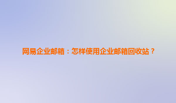 2025-04-13如何有效利用網(wǎng)易企業(yè)郵箱的回收站功能 在現(xiàn)代企業(yè)管理中,電子郵件已成為不可或缺的通信工具。網(wǎng)易企業(yè)郵箱作為市場(chǎng)上的佼佼者,提供了許多高效的功能,其中回收站功能便是其一。本文將詳細(xì)介紹如何使用網(wǎng)易企...