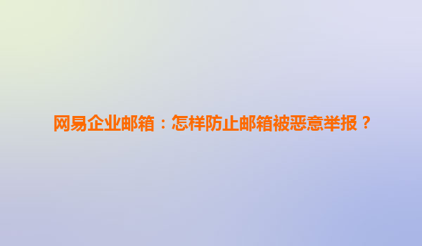 2025-04-13如何防止網(wǎng)易企業(yè)郵箱被惡意舉報(bào) 在當(dāng)今的商業(yè)環(huán)境中,電子郵件已成為企業(yè)溝通不可或缺的工具。網(wǎng)易企業(yè)郵箱作為市場(chǎng)上的主要服務(wù)提供者之一,提供了穩(wěn)定、安全的郵件服務(wù),幫助企業(yè)高效地進(jìn)行日常運(yùn)作。然而,...