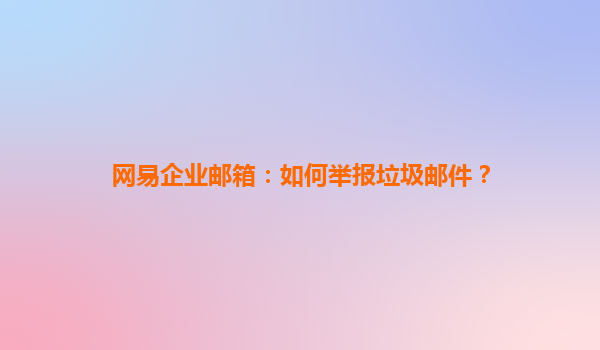 2025-04-13如何舉報(bào)網(wǎng)易企業(yè)郵箱中的垃圾郵件 隨著電子郵件的普及,垃圾郵件成為了許多人在日常工作中不可避免的困擾。網(wǎng)易企業(yè)郵箱作為一款廣受歡迎的企業(yè)級(jí)郵箱服務(wù),其強(qiáng)大的功能和便捷的使用體驗(yàn)深受企業(yè)用戶的喜愛。然而...