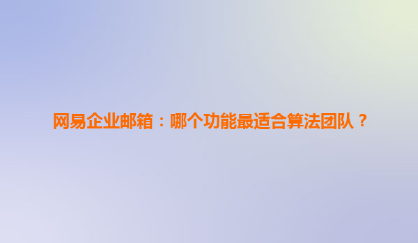 2025-04-11網(wǎng)易企業(yè)郵箱:哪個(gè)功能最適合算法團(tuán)隊(duì)? 在當(dāng)今數(shù)據(jù)驅(qū)動(dòng)的商業(yè)環(huán)境中,算法團(tuán)隊(duì)扮演著至關(guān)重要的角色。他們負(fù)責(zé)分析大量數(shù)據(jù),提取有價(jià)值的信息,以支持決策和創(chuàng)新。因此,選擇一個(gè)功能強(qiáng)大的企業(yè)郵箱系統(tǒng)對(duì)于...