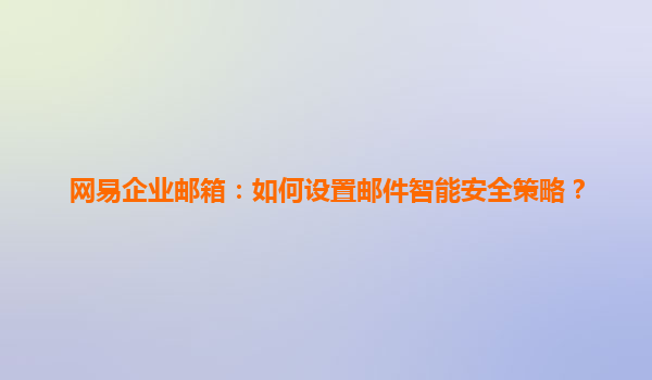 2025-04-11如何設(shè)置網(wǎng)易企業(yè)郵箱的郵件智能安全策略 在當(dāng)今信息化快速發(fā)展的時(shí)代,電子郵件已成為企業(yè)通信的重要工具。網(wǎng)易企業(yè)郵箱作為市場(chǎng)上的主要服務(wù)提供者之一,提供了多種智能安全策略,以保護(hù)企業(yè)免受各種網(wǎng)絡(luò)威脅...